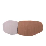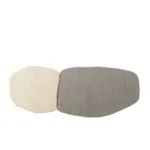 The AALAND rugs are characterized by a particularly original and distinctive graphic pattern. The design consists of two organic rounded shapes, each with different fills and textures, creating an interesting visual contrast. These two shapes, while maintaining some visual independence, are connected by a graphic element that can be interpreted as a sort of stylized suture.