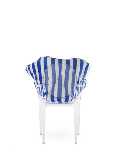 Versatile and comfortable, the Alice’s Flowers collection comes in 5 color variants: yellow, blue, pink, red, white and 2 striped and polka dot prints. The cushions are designed to transform a selection of masterpieces into padded armchairs: Masters, Louis Ghost, A.I., Venice, Hiray, Generic A and C.
