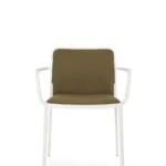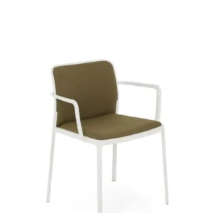 Audrey is a versatile and contemporary chair which because of its simple, clean lines obtained through a special die-casting process is composed of only two parts and made without welding. It is multifunctional and adaptable to all uses – indoor, outdoor, the home, office and contract – with its wonderfully rich range of combinations both hard and soft. Audrey comes in either the chair or the armchair (with arms) version.