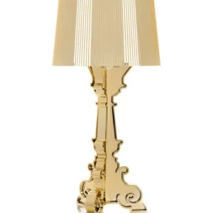 Bourgie unites classicism, wealth and tradition with technological innovation. The baroque-style base consists of three decorated elements that interlock, while the large shade is created with a pleated effect which creates a multitude of reflections when lit. Thanks to a special system used to hang the shade, three different heights can be obtained, altering them to suit personal preference, depending on the use to be made of the lamp: 68, 73 and 78 centimetres.