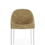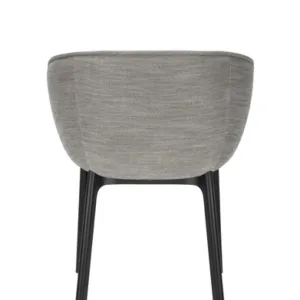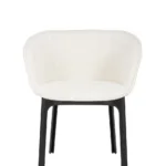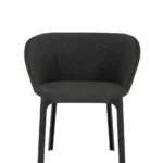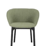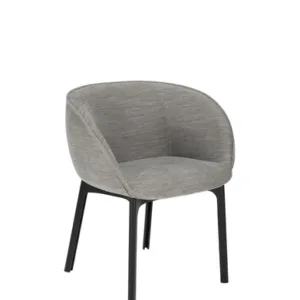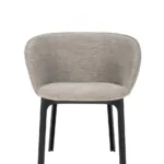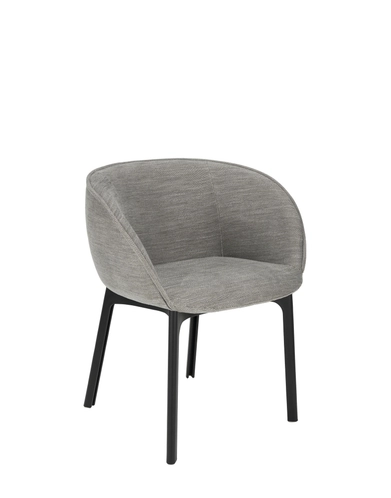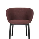 Charla combines elegance with sustainability thanks to legs made from recycled plastic. The frame comes in black, with upholstery in bouclé fabric or a special mélange fabric for the contract market