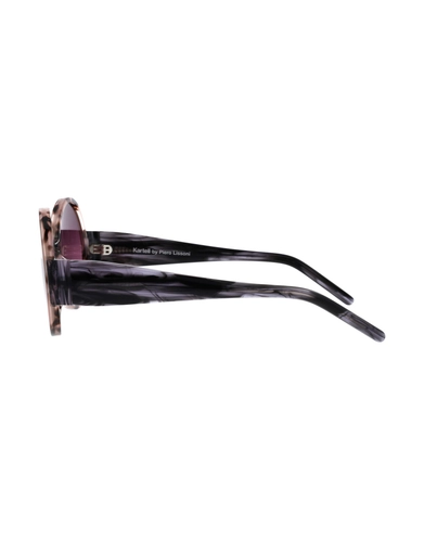 provided by the tortoiseshell finish in which the lighter and darker shades vary from the front piece to