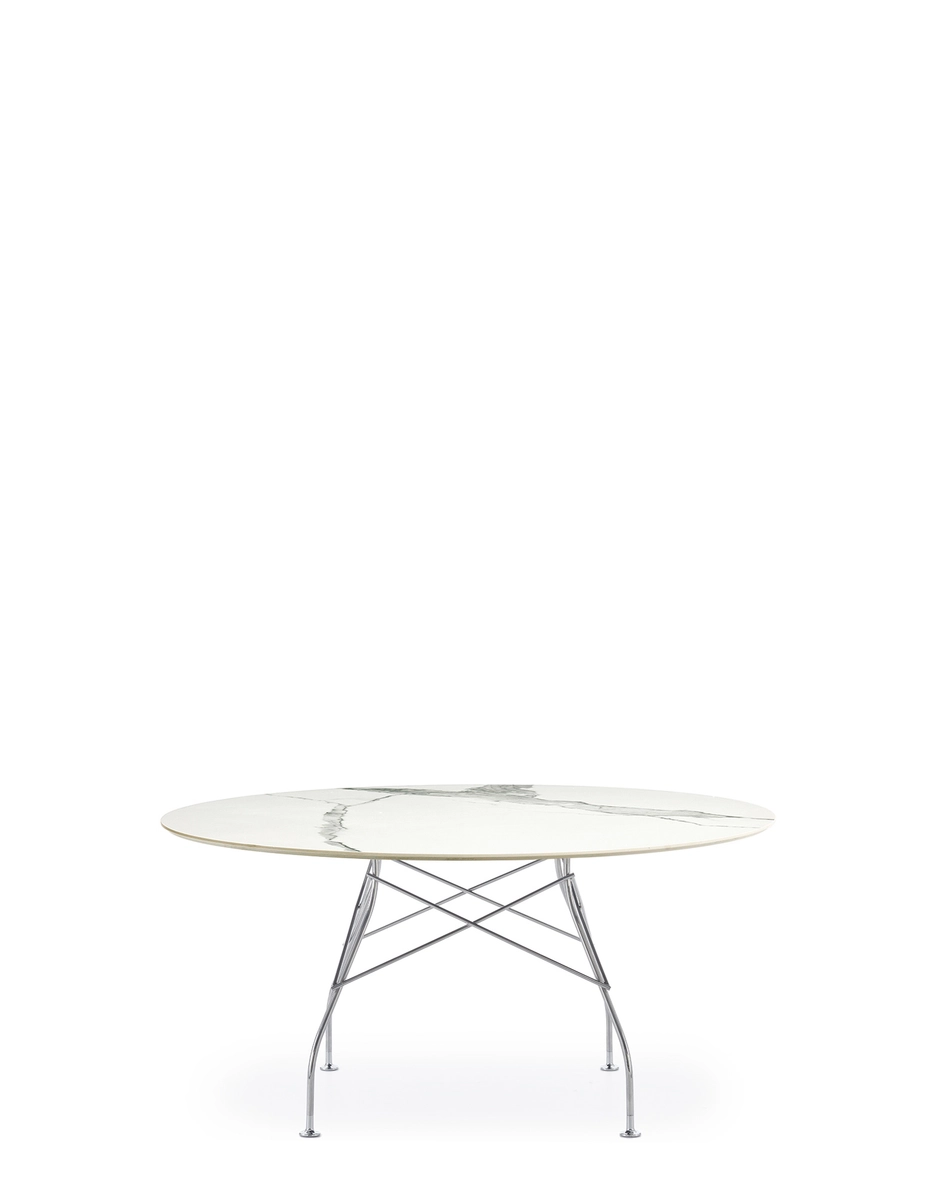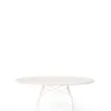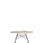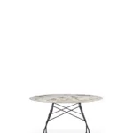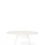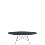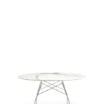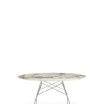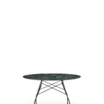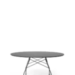 A family of tables ideal for the home and office. The light steel structure is made particular by the use of the cross element that joins the legs on each of the four sides, supporting the top. The collection comprises square, oval and round versions.