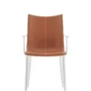 Philippe Starck elevates us to new heights with the H.H.H. – HER HIGHEST HIGHNESS chair. With unparalleled elegance and graphic impact, H.H.H. defines the very essence of the human interacting with it, compelling one to take a stance. It transcends the mere notion of sitting, transforming every moment spent upon it into one of true majesty. The frame is crafted from recycled material, and the seat is available in various finishes: recycled leather with green tanning treatment, in black and tan colours, eco-friendly texture sourced partly from recycled material and partly from renewable sources in black and tobacco colours, and in super glossy finish in white, black, burgundy, rust, mustard, blue and green.