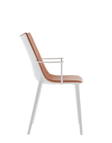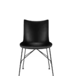 Philippe Starck elevates us to new heights with the H.H.H. – HER HIGHEST HIGHNESS chair. With unparalleled elegance and graphic impact, H.H.H. defines the very essence of the human interacting with it, compelling one to take a stance. It transcends the mere notion of sitting, transforming every moment spent upon it into one of true majesty. The frame is crafted from recycled material, and the seat is available in various finishes: recycled leather with green tanning treatment, in black and tan colours, eco-friendly texture sourced partly from recycled material and partly from renewable sources in black and tobacco colours, and in super glossy finish in white, black, burgundy, rust, mustard, blue and green.
