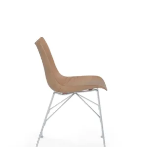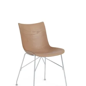 These brand-new rotating armchairs on wheels are the latest addition to the armchair collection. P/wood is characterized by a woodworking, combining timeless elegance with contemporary forms, and is available in three colour variants: light wood with a white seat and chrome structure, dark wood with a black seat and chrome structure or dark wood with a black seat and black structure.