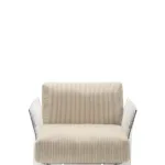 Pop outdoor is the modular sofa with evanescent profiles characterised by large seat and backrest cushions which make it soft and comfortable, made with fabrics conceived specifically for outdoor use. The Pop collection is completed by an armchair with th