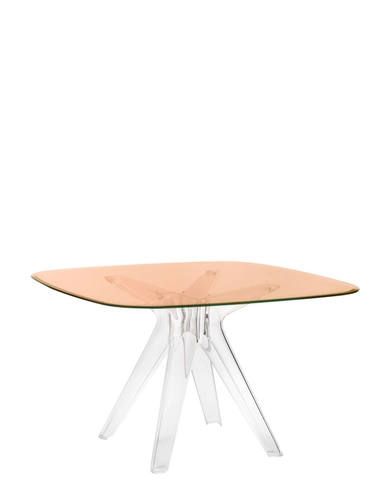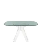 The Sir Gio table is characterised by a central leg created using a high-tech mould: the moulded plastic material conveys high performance and stability to support the glass top. The table offers the chance to combine different coloured bases and tops, for a wide range of different solutions.