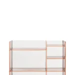 Multi-shaped and multi-purpose shelving system, stackable and modular, offering the possibility of creating a variety of geometric and chromatic compositions. This accessory can play the dual role as both container and room divider.