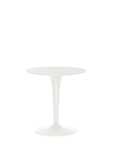 TipTop is a small side table, light and versatile, formed of a single base supporting the solid 48 cm diameter table top. The combination of the coloured top and the transparent, hollow leg gives depth to the structure.