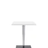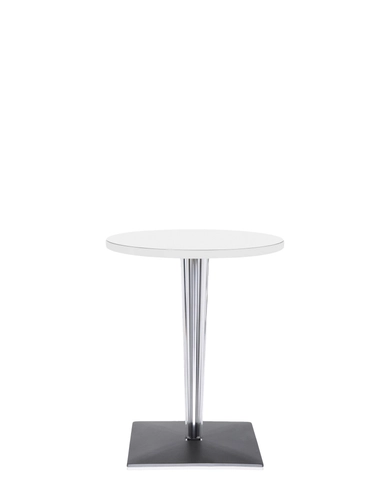 The TopTop table line is distinguished by its leg which can be either a round or square transparent section with a multi-faceted surface and metal core.