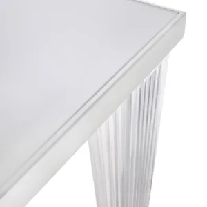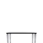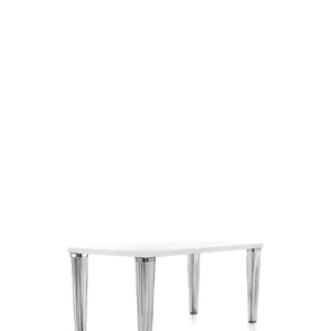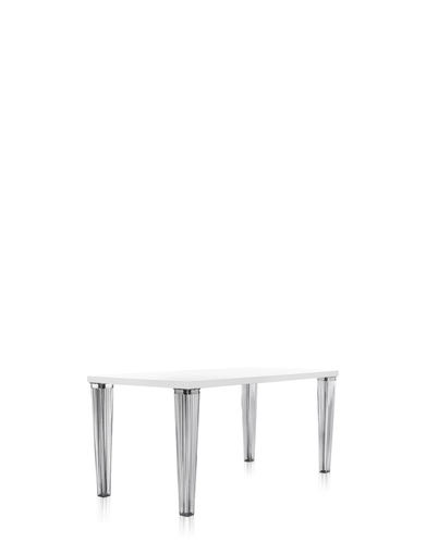 The TopTop table line is distinguished by its leg which can be either a round or square transparent section with a multi-faceted surface and metal core.