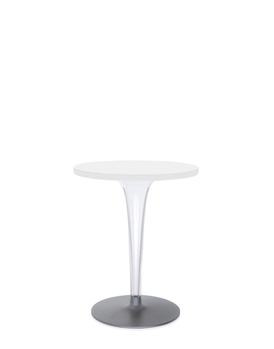 The TopTop table line is distinguished by its leg which can be either a round or square transparent section with a multi-faceted surface and metal core.