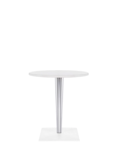 The TopTop table line is distinguished by its leg which can be either a round or square transparent section with a multi-faceted surface and metal core.