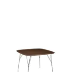 VISCOUNT OF WOOD tables are the latest addition. These naturally composed tables complement the collection’s choice of seats and create a sustainable living area in which wood plays a central role thanks to its lightweight properties. These large items of furniture feature top-quality materials and advanced manufacturing technology. The square and rectangular versions with four legs come in five sizes (100×100, 145×80, 160×90, 190×90 and 240×100) and three top finishes: light ash with two darker shades, flamed walnut and a third, characterised by thin strips of different tones of dark wood. The legs are in chrome or black.